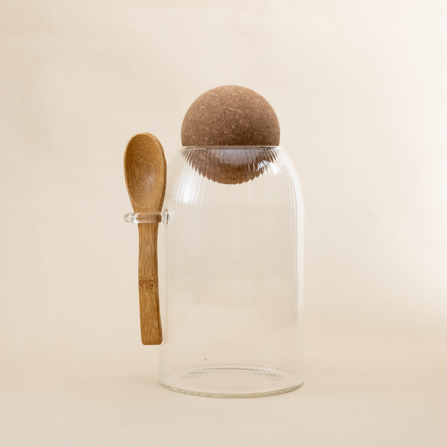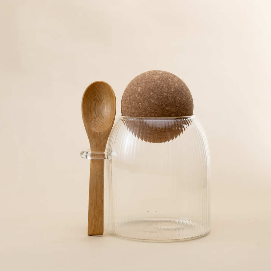 البرطمانات خامتها زجاج شفاف عالي الجودة بغطاء محكم بيحافظ على نكهة وجودة المكونات. كل برطمان بييجى مع معلقة خشب أنيقة تسهّل عليكى الاستخدام وتدي شكل شيك سواء على السفرة أو الرف.