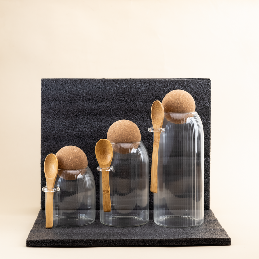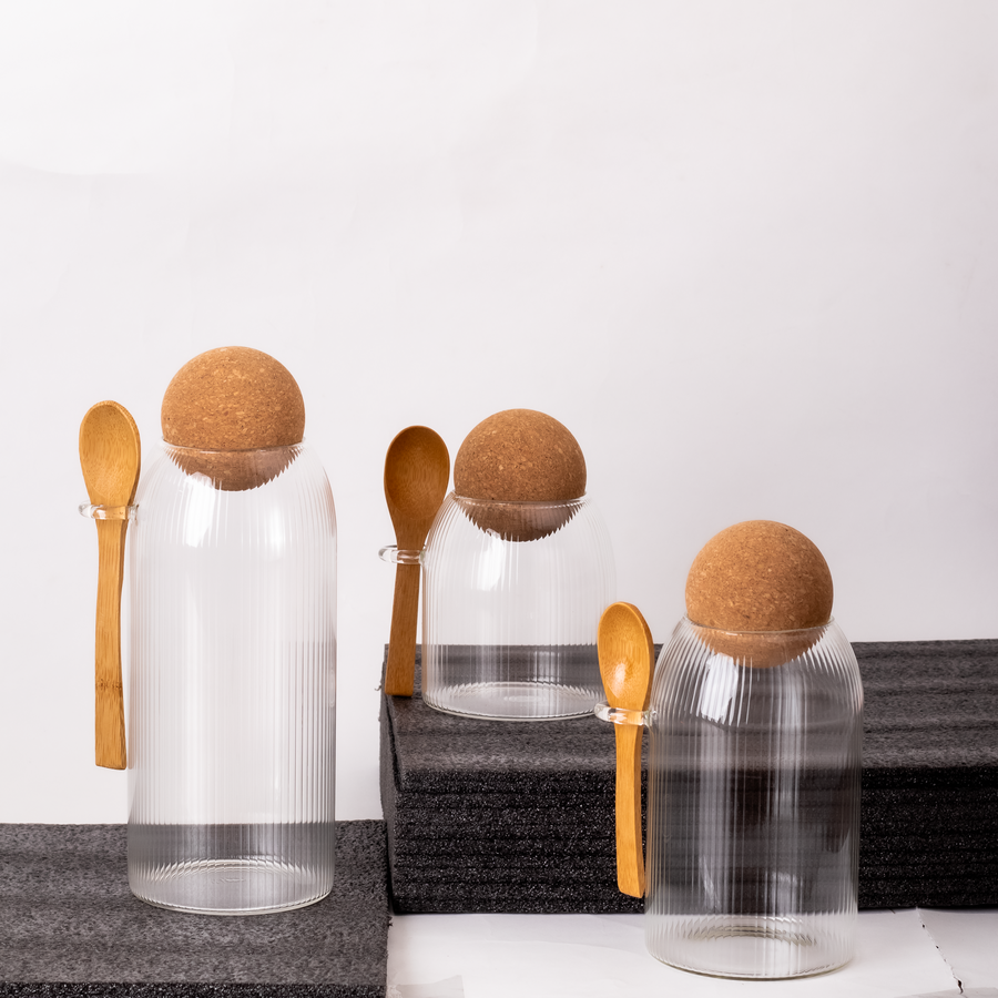 نظّمى مطبخك بأناقة مع طقم برطمانات زجاج شفاف 3 قطع بغطاء محكم ومعلقة خشب. مثالى لتخزين التوابل، القهوة، والسكر مع الحفاظ على النكهة والطزاجة.