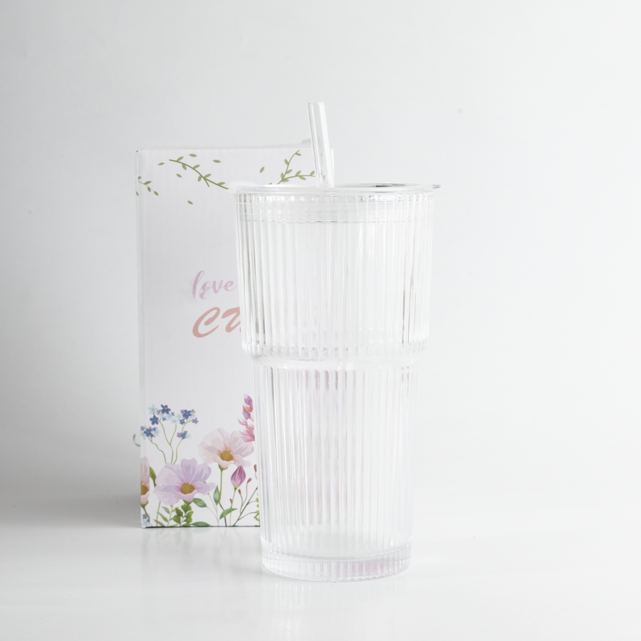 مج مضلع آيس كوفي من AtoZ بسعة 350 مل، تصميم عصري وخامة متينة، غطا ء وشاليموه عملية – مثالي للآيس كوفي والعصاير والمشروبات الباردة.