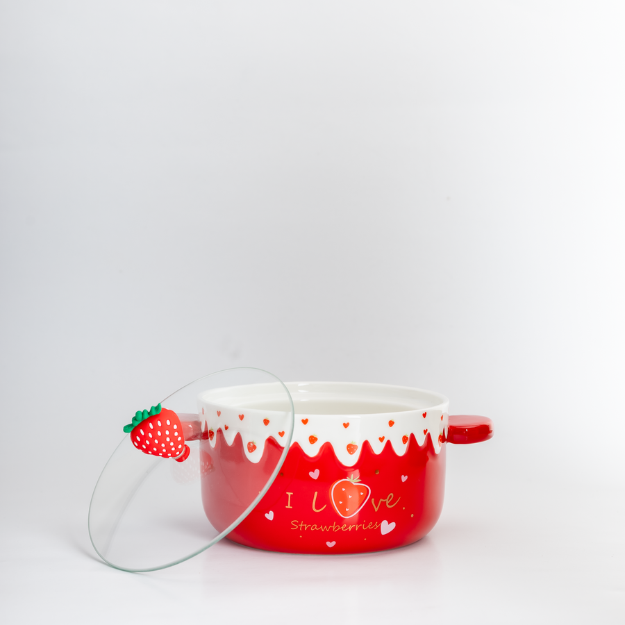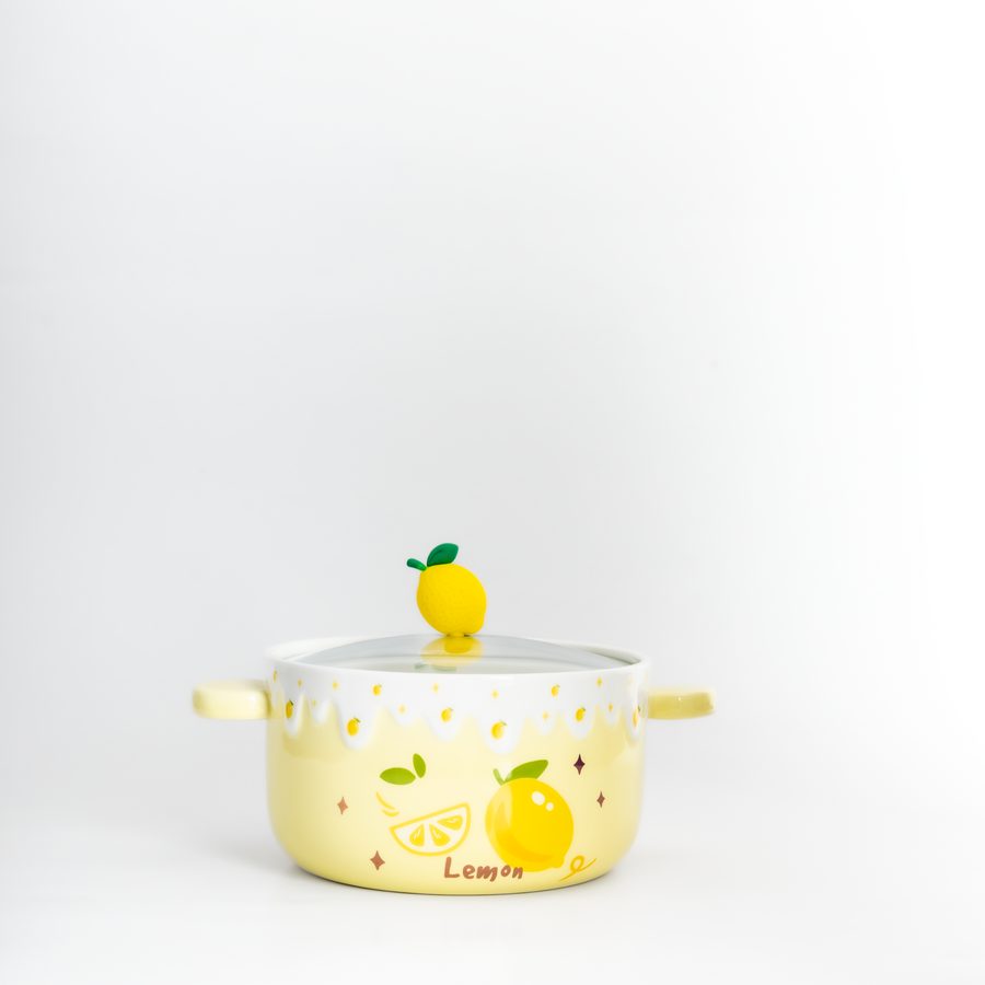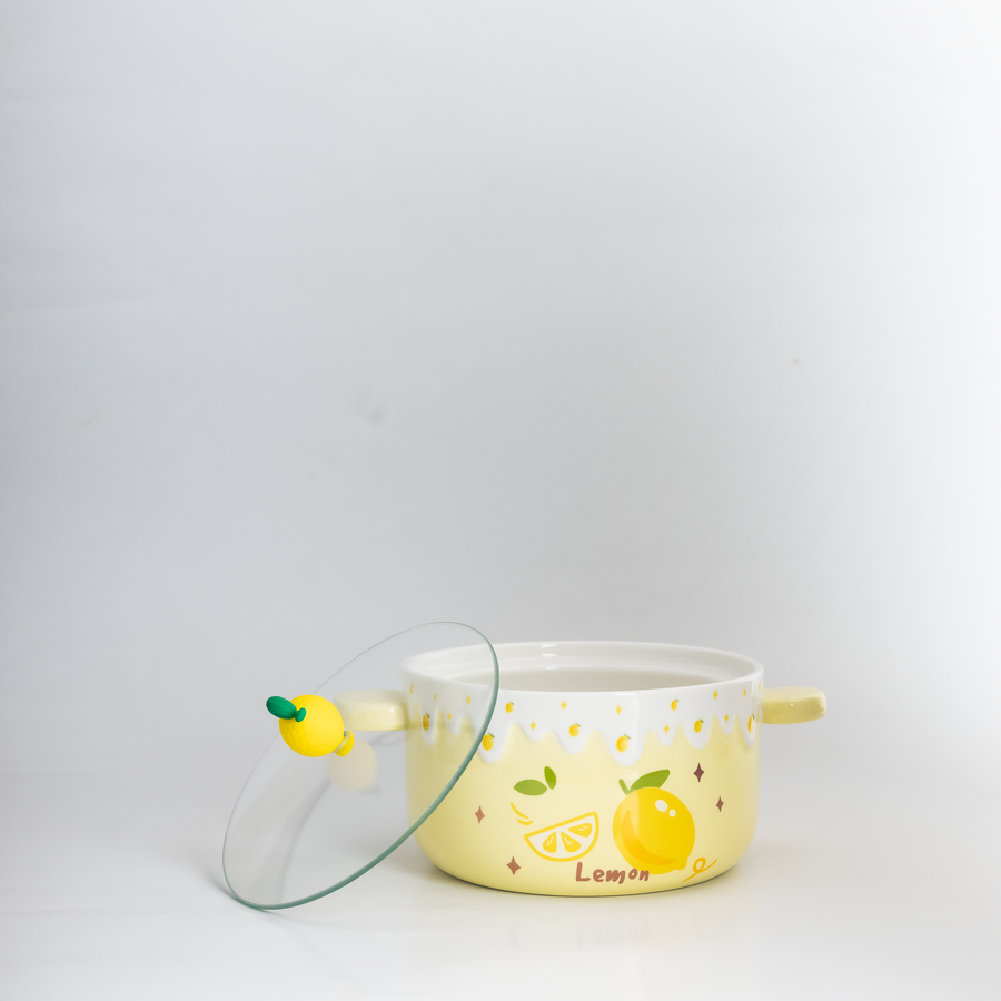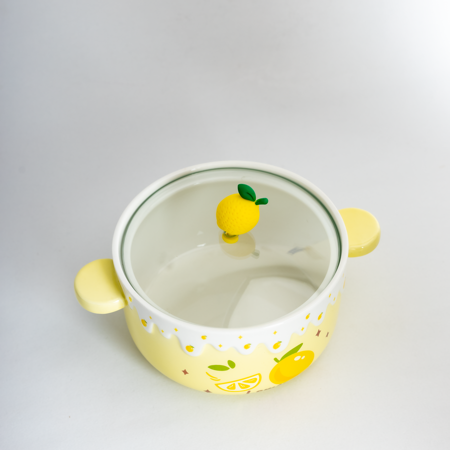 حلة بورسلين من AtoZ بغطاء زجاج ويد فاكهة كيوت – أنيقة، متينة، وسهلة التنضيف. مناسبة للتقديم على السفرة وآمنة للمايكروويف و دخول الفرن
