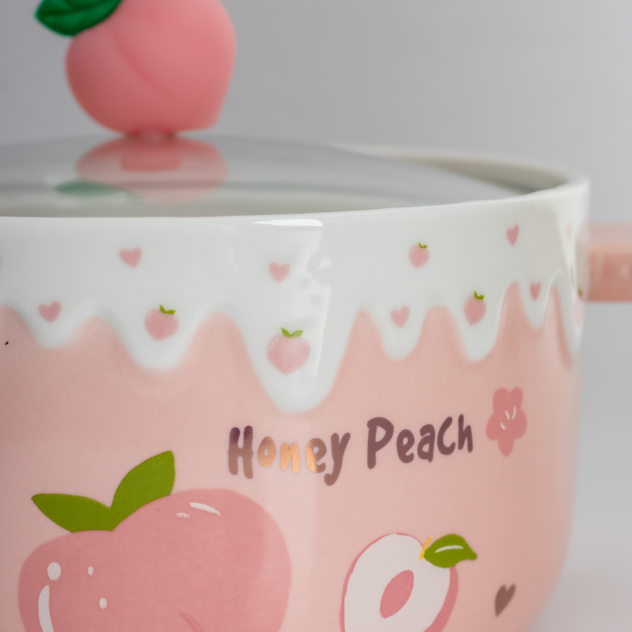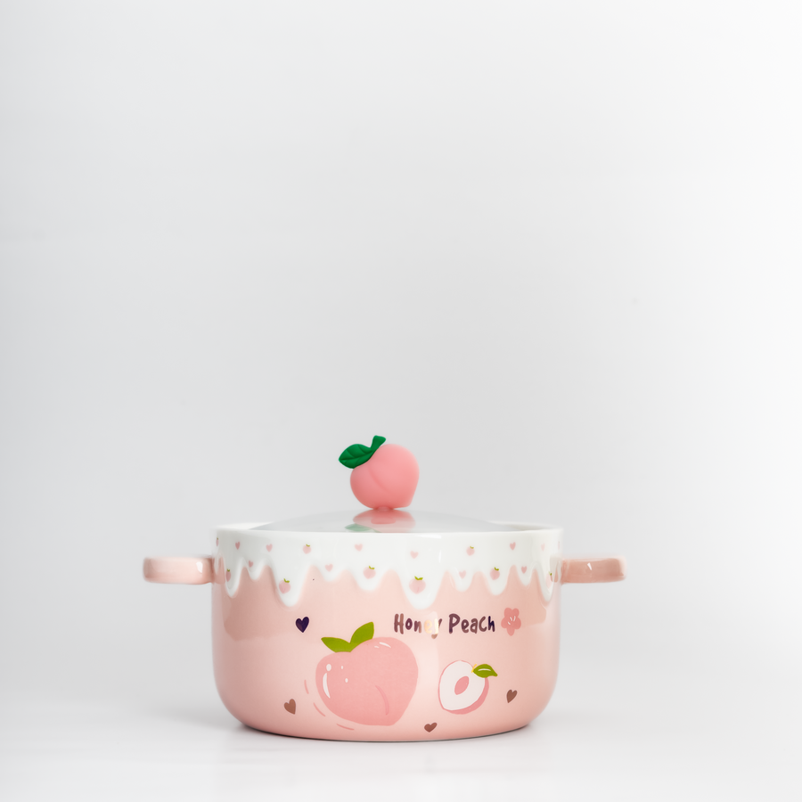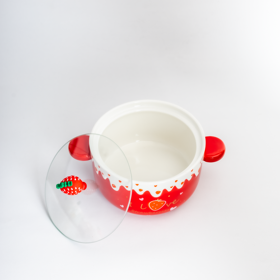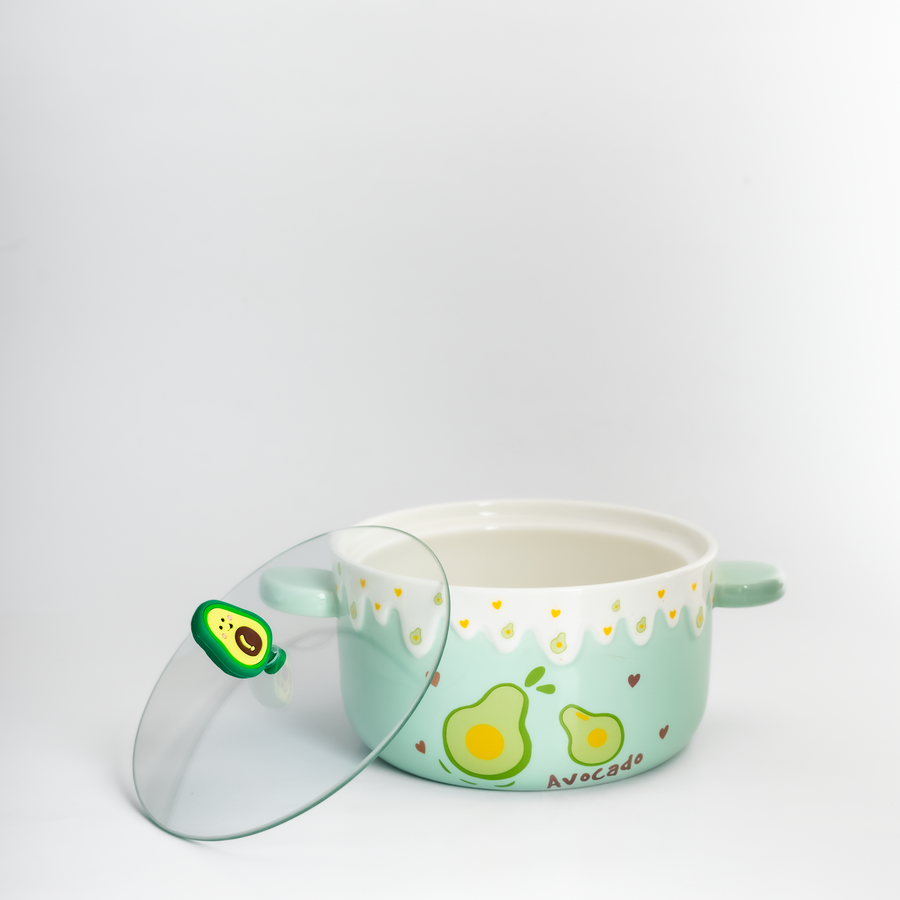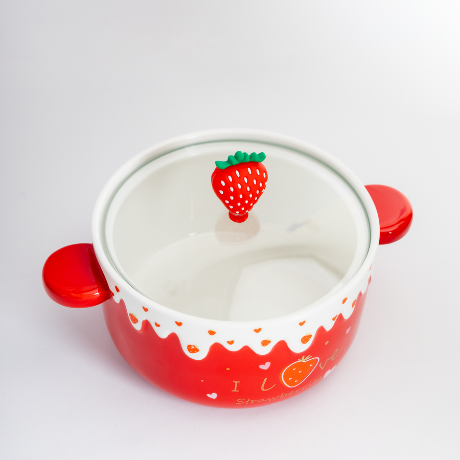 حلة بورسلين من AtoZ بغطاء زجاج ويد فاكهة كيوت – أنيقة، متينة، وسهلة التنضيف. مناسبة للتقديم على السفرة وآمنة للمايكروويف و دخول الفرن