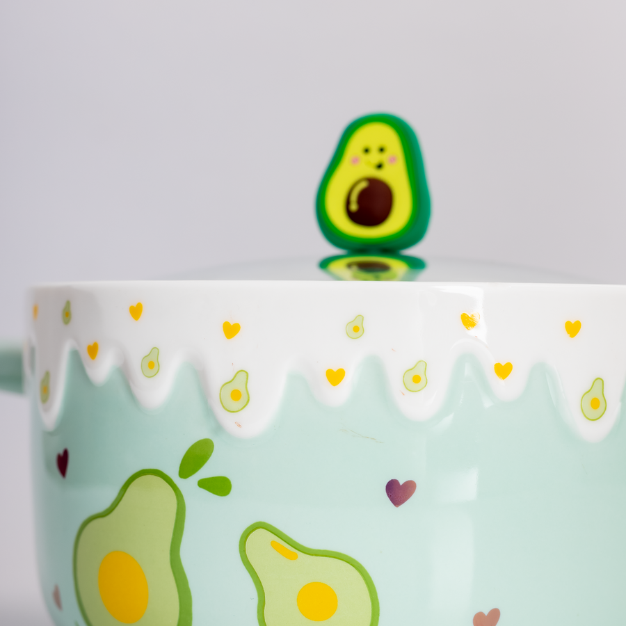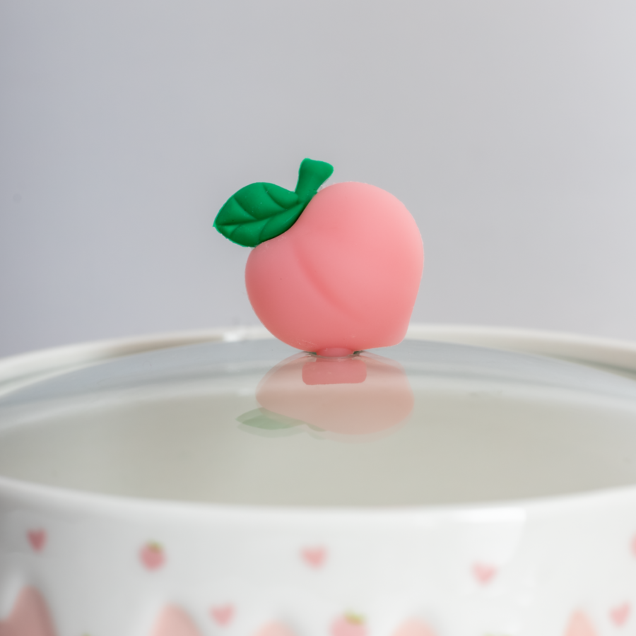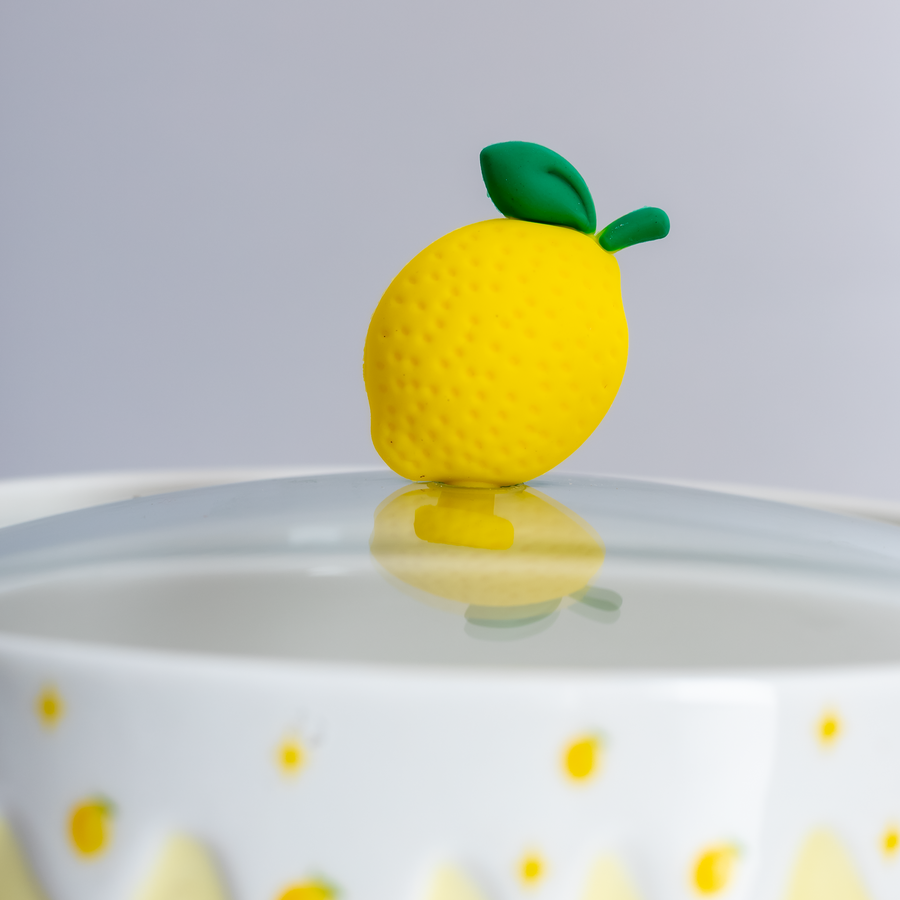 مصنوعة من بورسلين عالي الجودة مقاوم للخدش، وغطاء زجاج مزين بيد فاكهة كيوت (ليمون 🍋، خوخ 🍑، أفوكادو 🥑) بيضيف شكل عصري وجميل لأي سفرة.