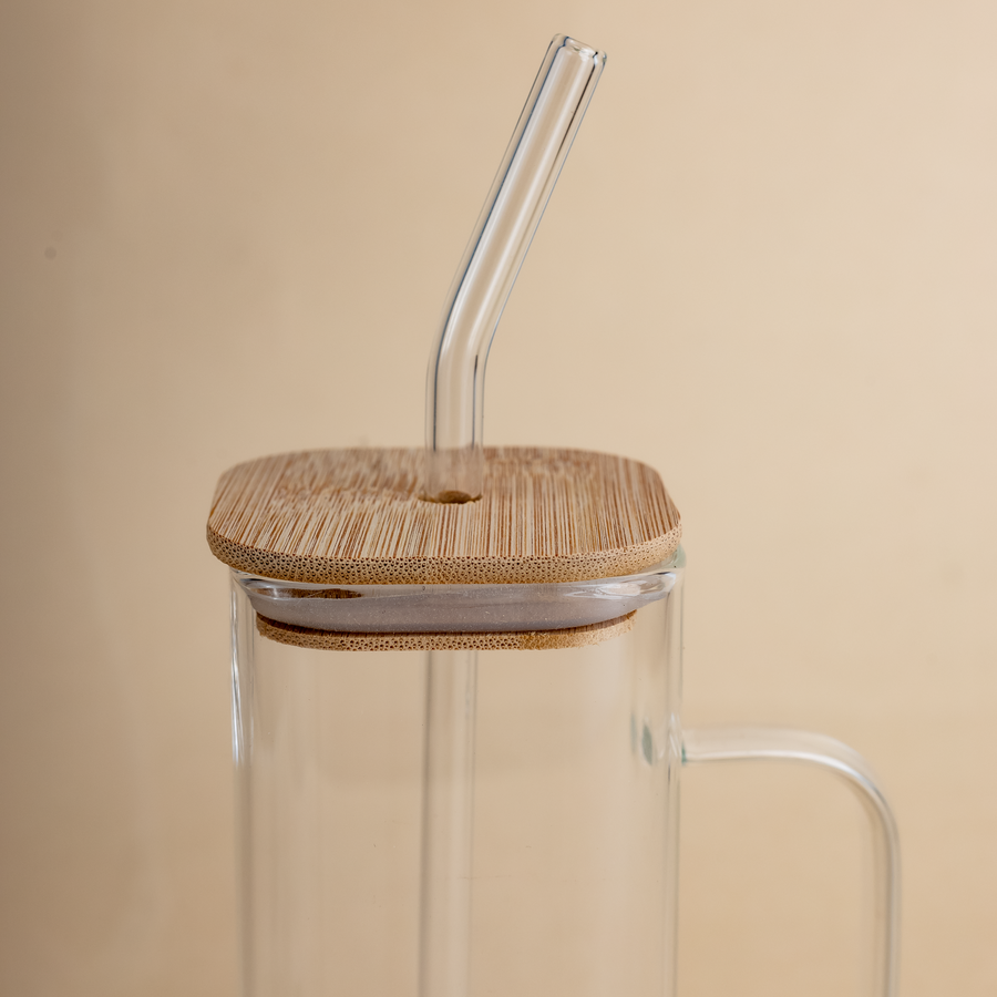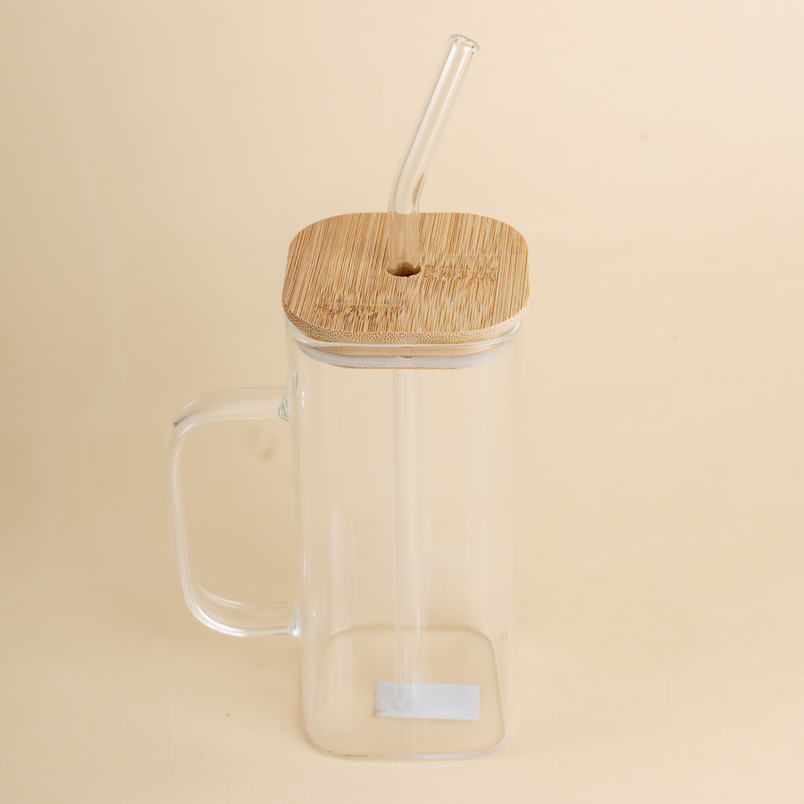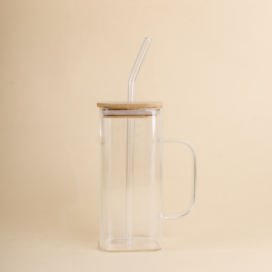 مج مربع بمقبض مع شفاطة من AtoZ – تصميم عصري عملي بغطاء محكم، مثالي للعصاير والآيس كوفي والمشروبات الباردة. أنيق، آمن وسهل الاستخدام.