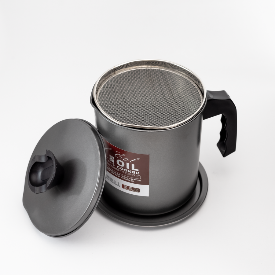 وعاء تصفية الزيت من AtoZ – ستانلس ستيل متين بغطاء محكم ومصفاة دقيقة. يحافظ على الزيت نظيف لإعادة الاستخدام بسهولة وصحي.