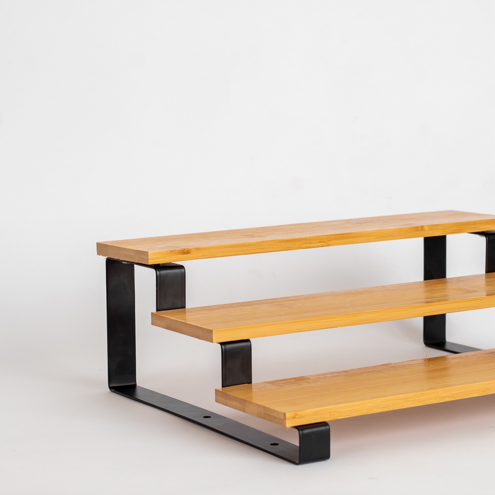 سلم عرض خشب بامبو بثلاث درجات وهيكل معدني مطلي من ATOZ، مثالي لترتيب التوابل والبرطمانات بأناقة وتنظيم.