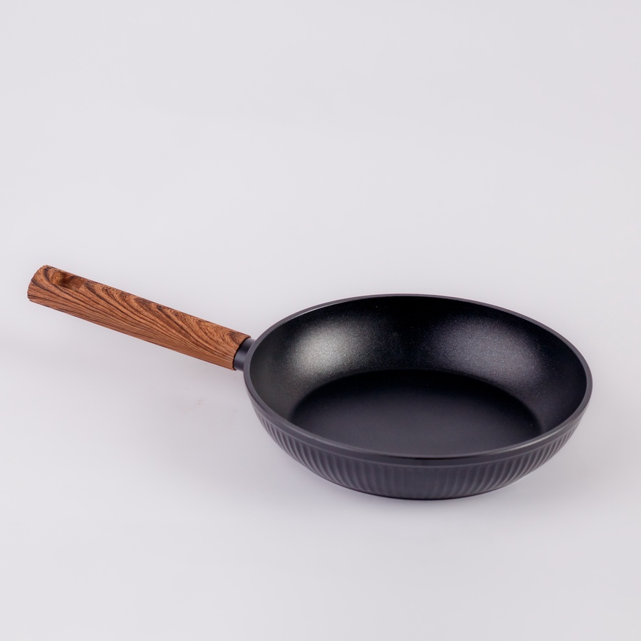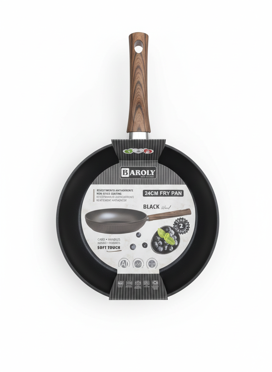 اشتري مقلاة Baroly Black Wood 24 سم بطبقة غير لاصقة قوية، توزيع حرارة متساوي ومقبض خشبي Soft Touch. ضمان سنتين.