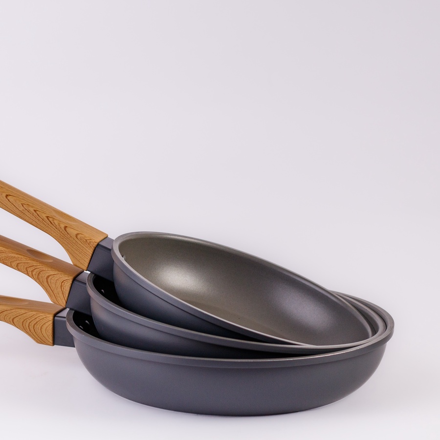 مقلاة Baroly Earth Grey مقاس 24 سم بطبقة نون ستك حجرية لطبخ صحي بدون التصاق. تصميم أنيق وأداء عالي من AtoZ.