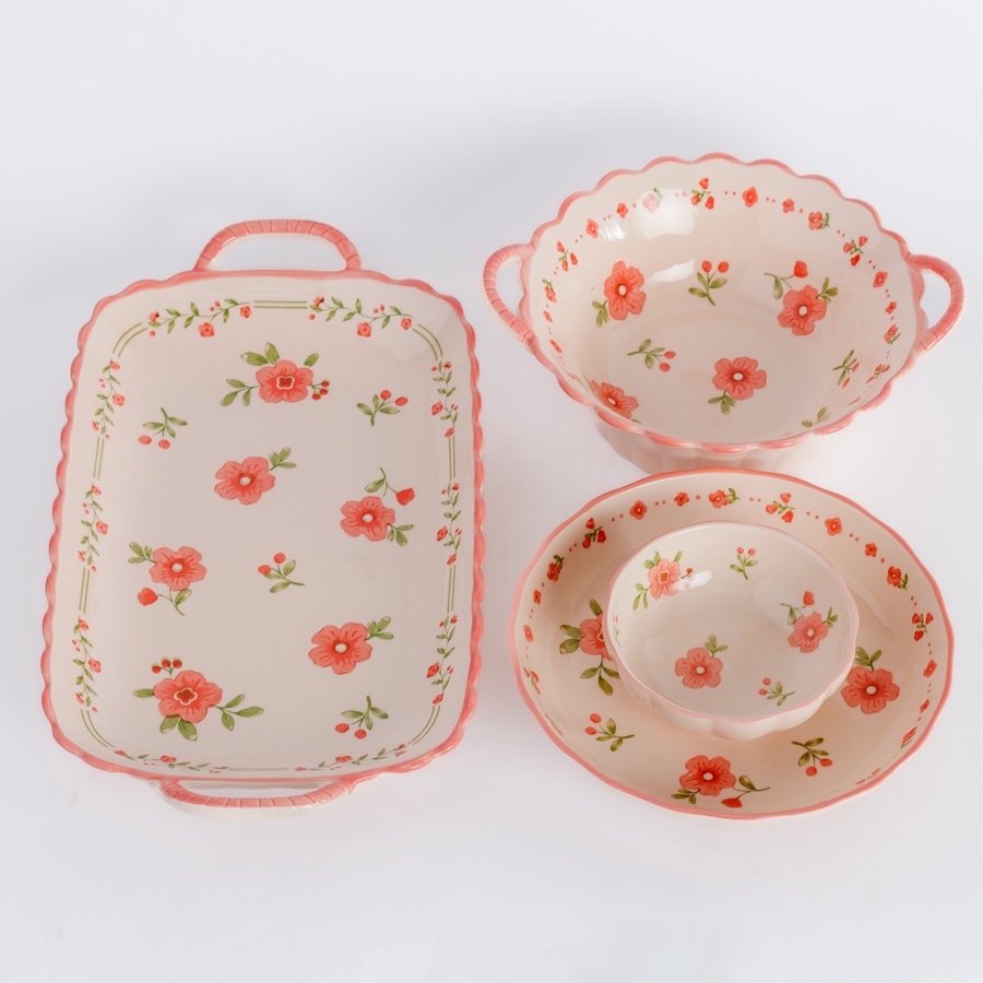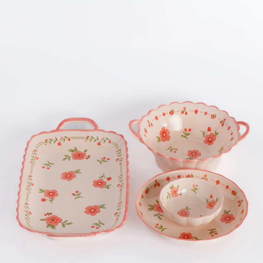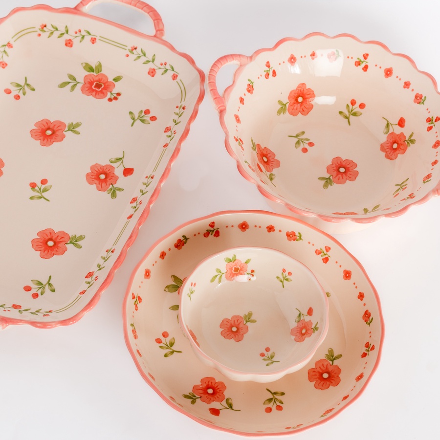 طقم فلورا روز بتصميمه المميز ونقوش الورد الناعمة يضيف جمال خاص لأي مائدة، سواء لفطار هادي مع العيلة أو عشاء راقي مع الضيوف.