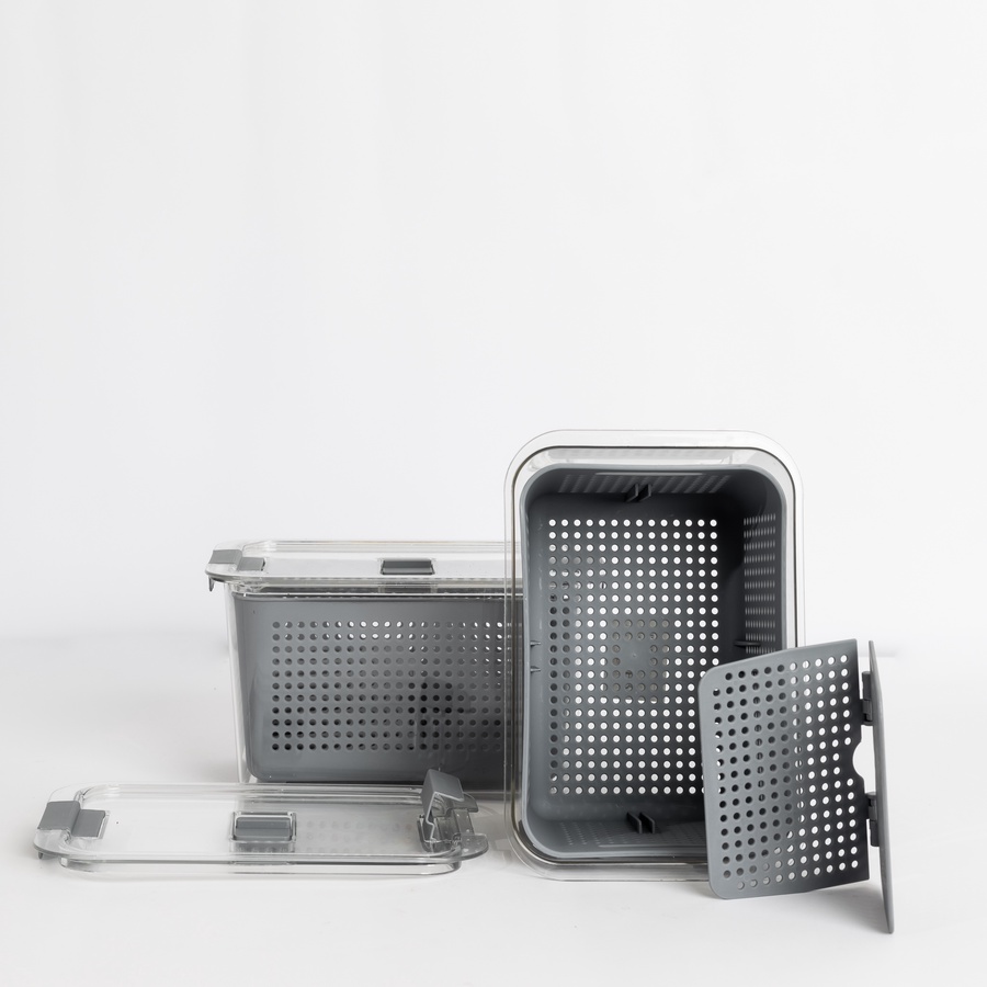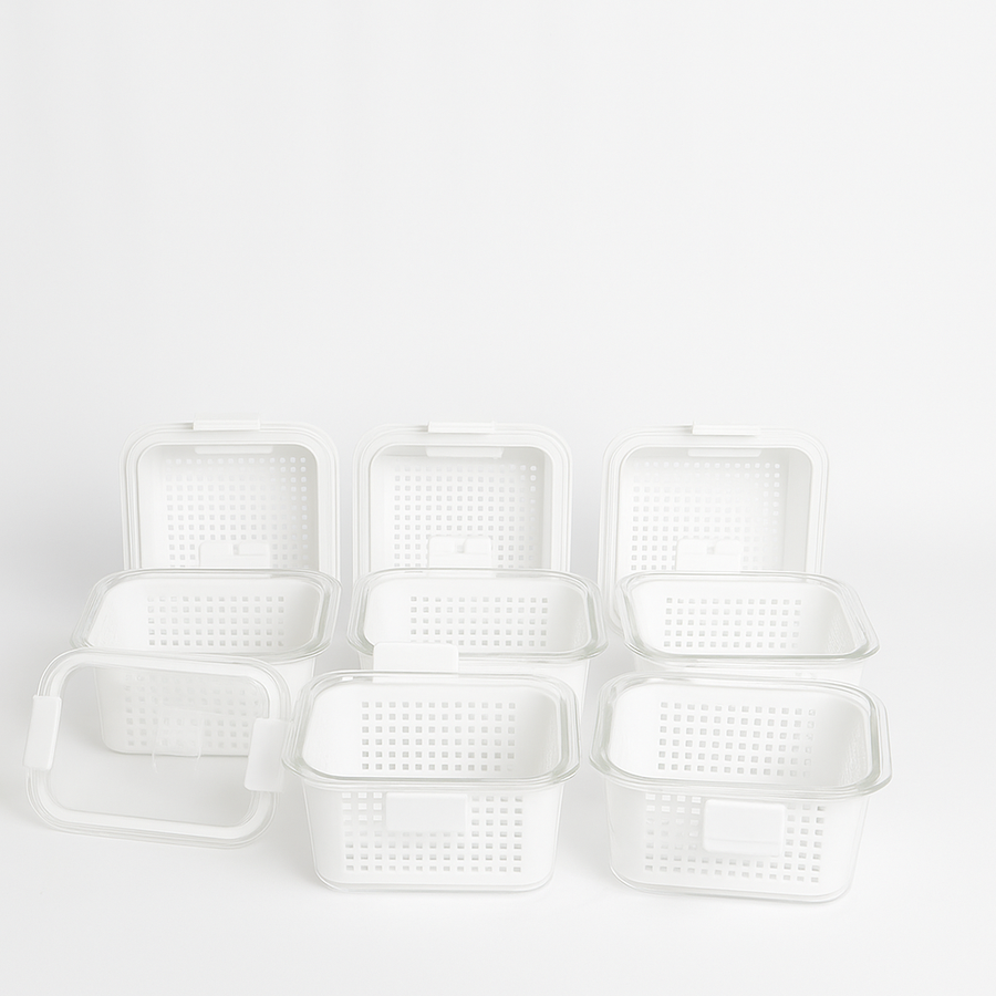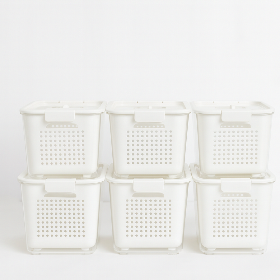 طقم منظمات تلاجة اكليريك 6 قطع من ATOZ بغطاء محكم ومصفاة داخلية، يحافظ على الطعام طازجًا وينظم التلاجة بسهولة وأناقة.
