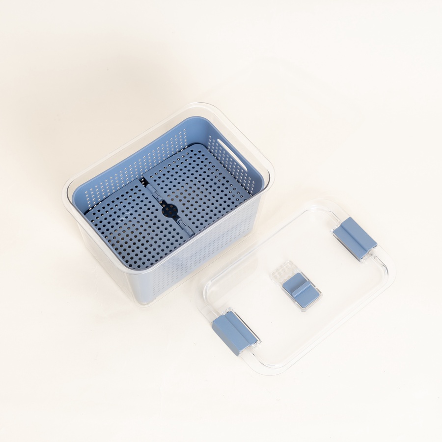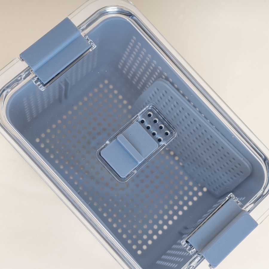منظم تلاجة زجاج من ATOZ بغطاء محكم ومصفاة داخلية، يحافظ على الخضار والفواكه طازجة وينظم التلاجة بقطعة واحدة عملية وأنيقة.