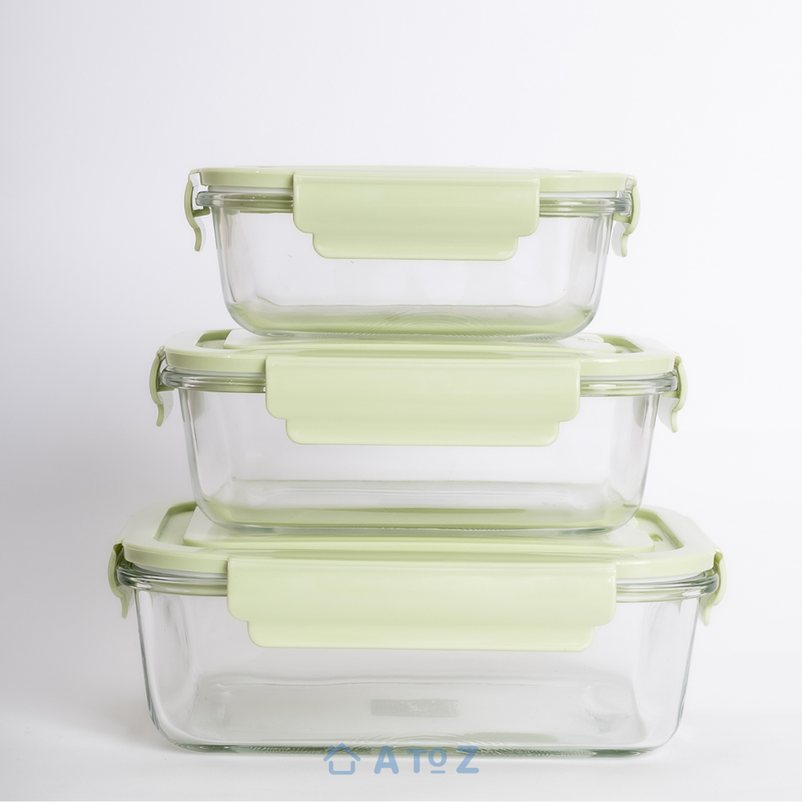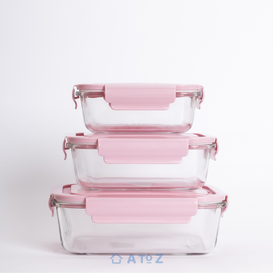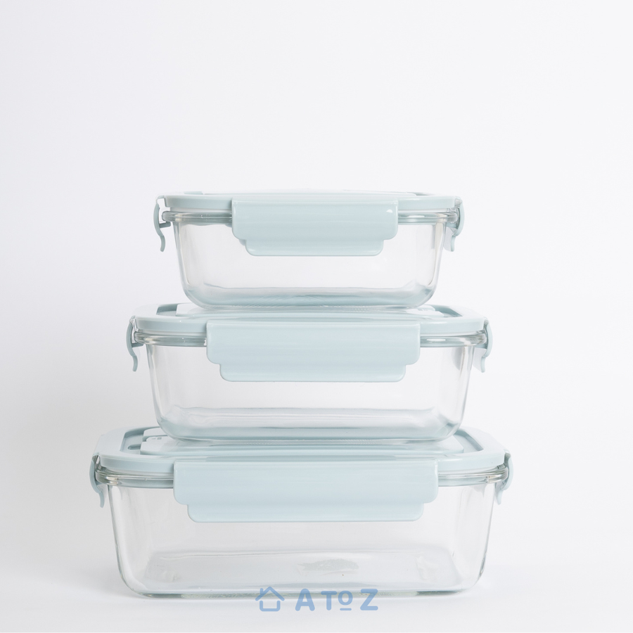 طقم علب بايركس زجاج 3 قطع من AtoZ – آمن للميكروويف والفرن والفريزر، بأغطية محكمة لمنع التسريب وحفظ الأكل طازة فى كل مكان.