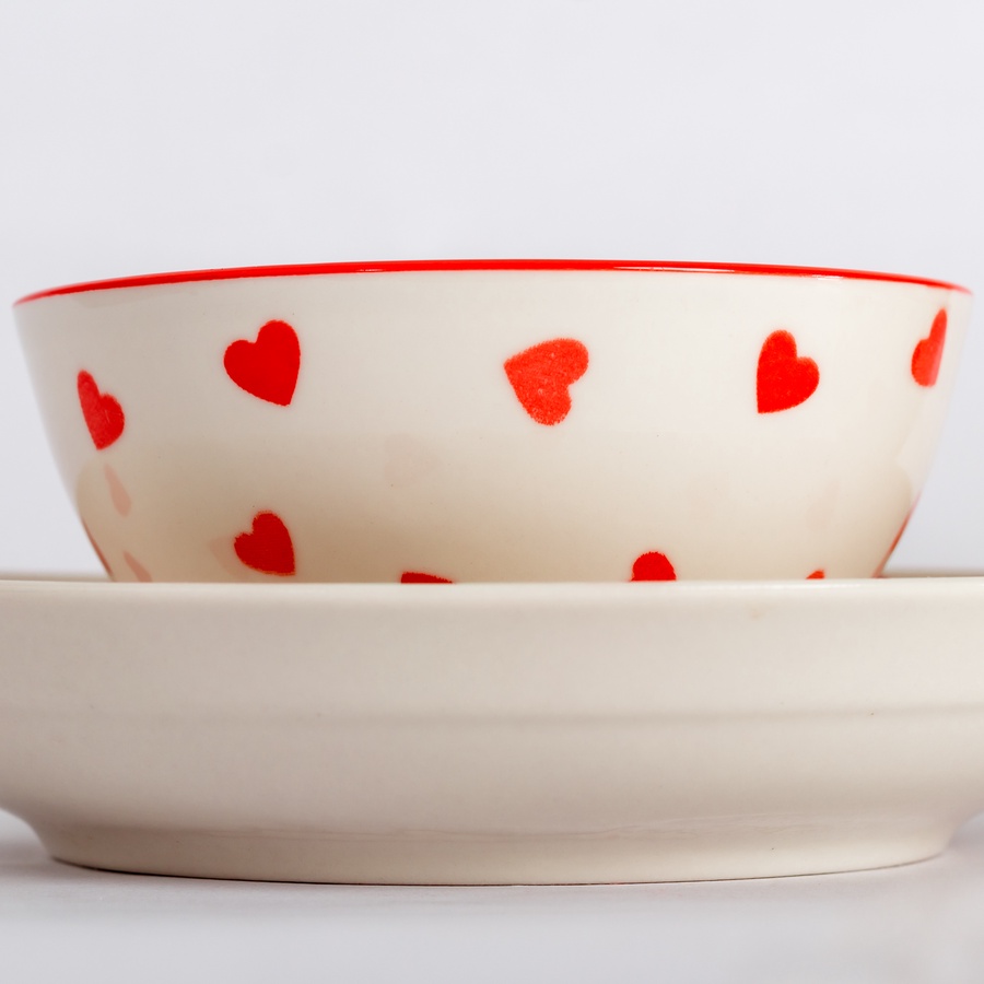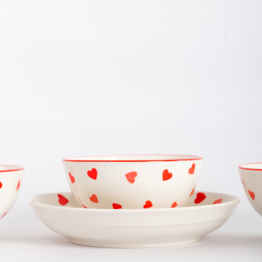 استمتعي بفطار مميز كل يوم مع طقم البورسلين بتصميم القلوب الحمراء الأنيق 💖