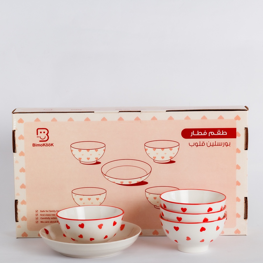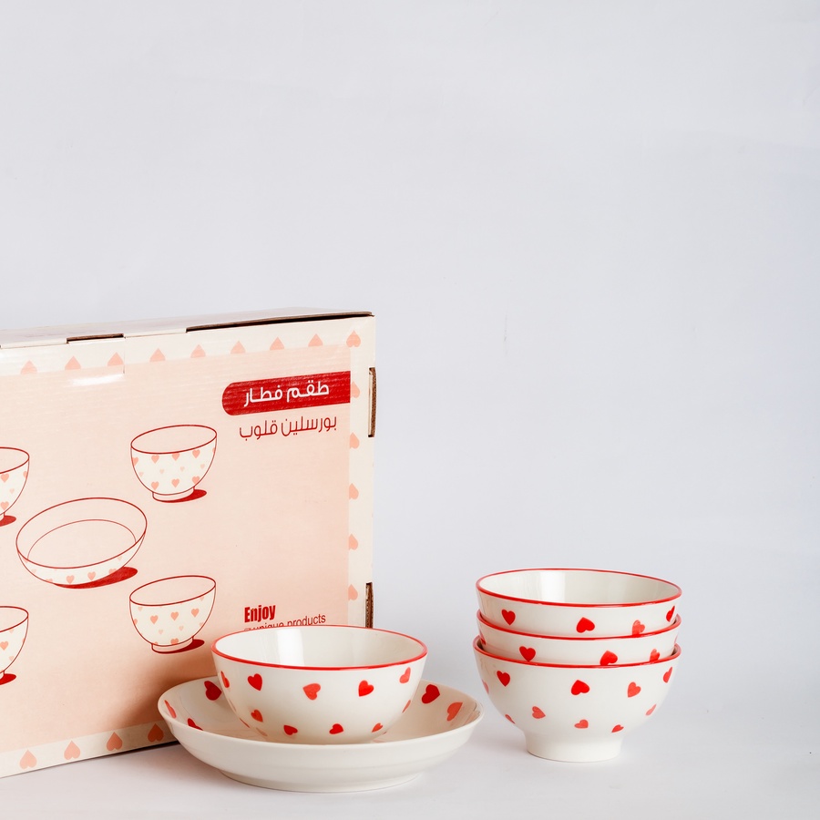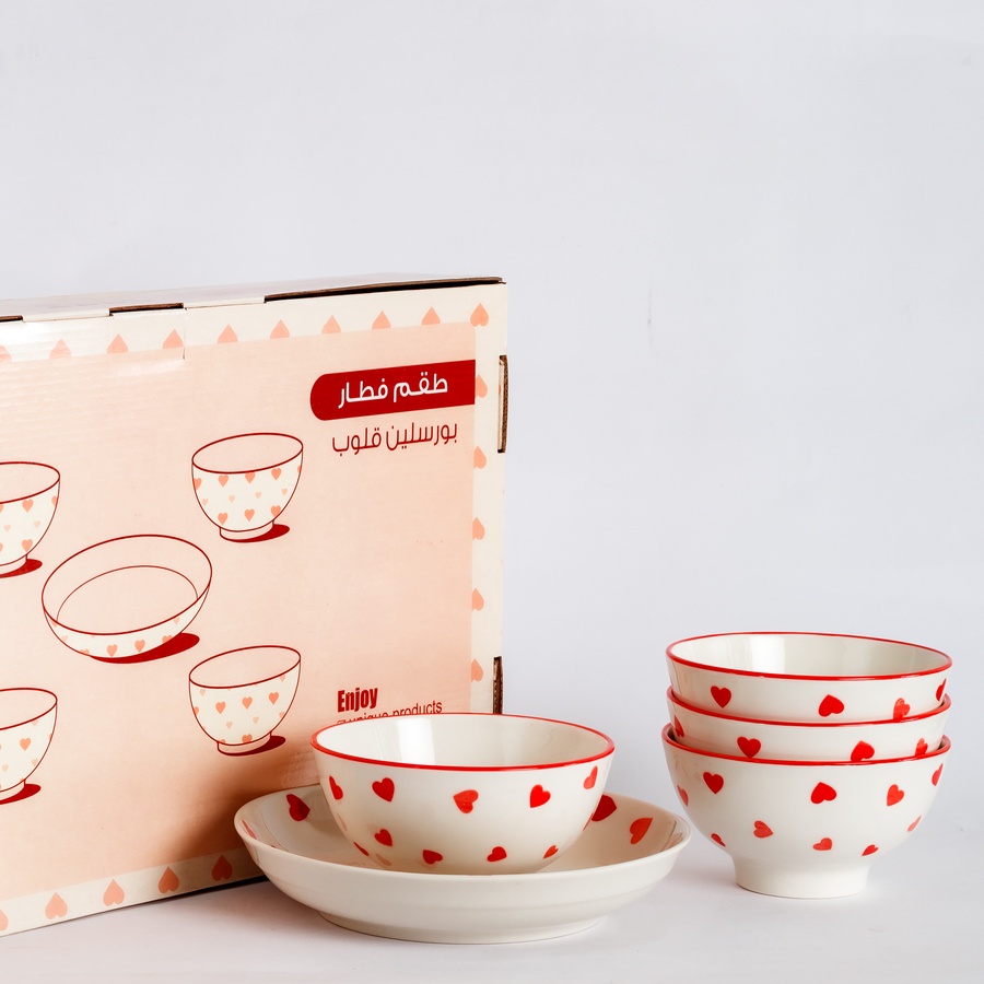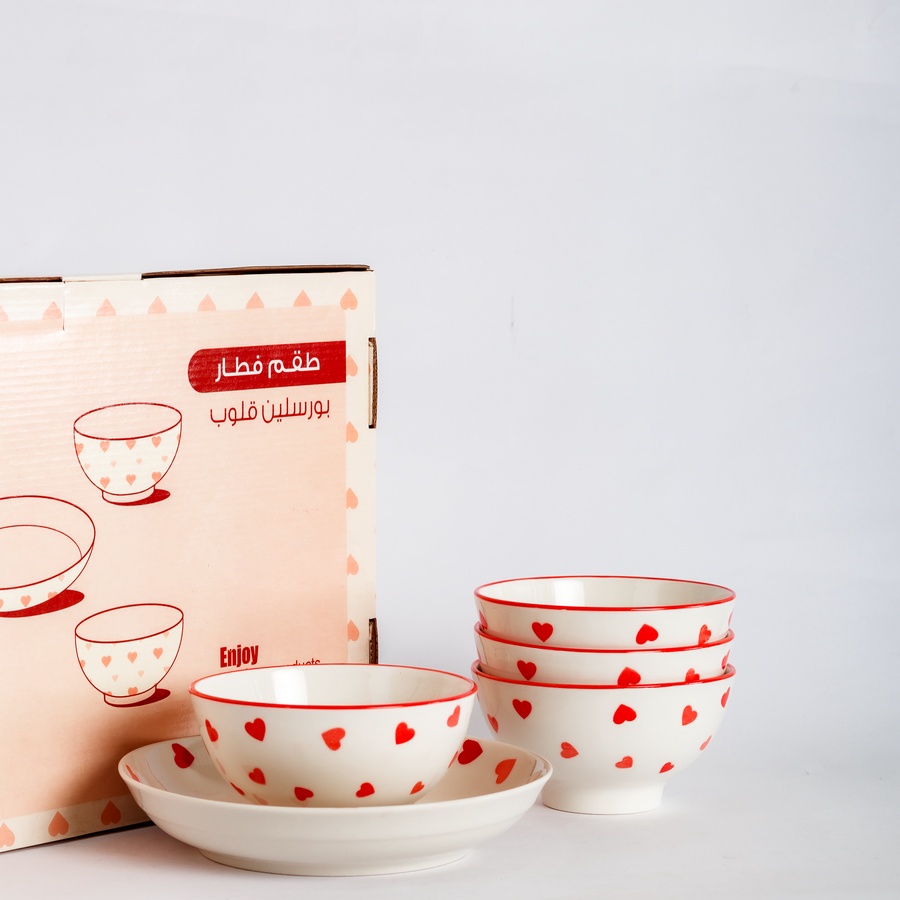 اشتري طقم فطار بورسلين قلوب حمراء 5 قطع بتصميم أنيق ومميز، مناسب للاستخدام اليومي والتقديم. خامة عالية الجودة متوفرة الآن بأفضل سعر.