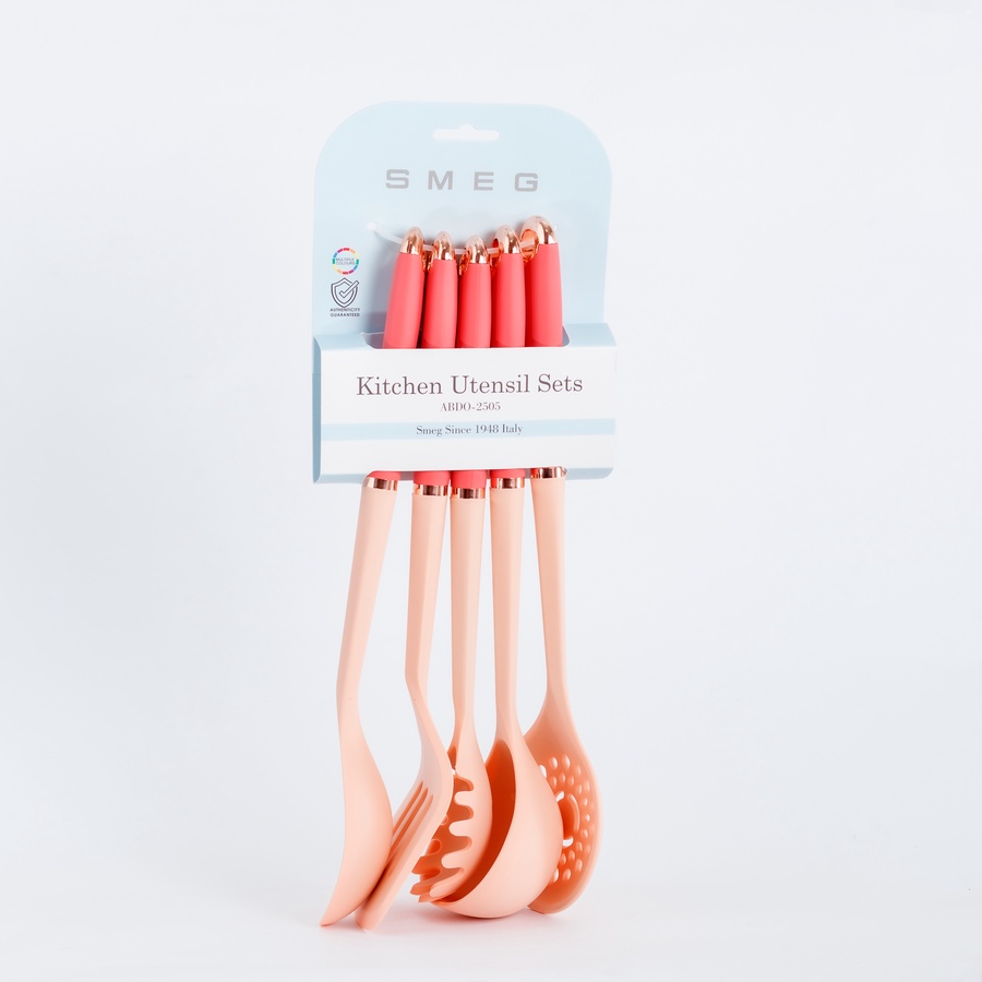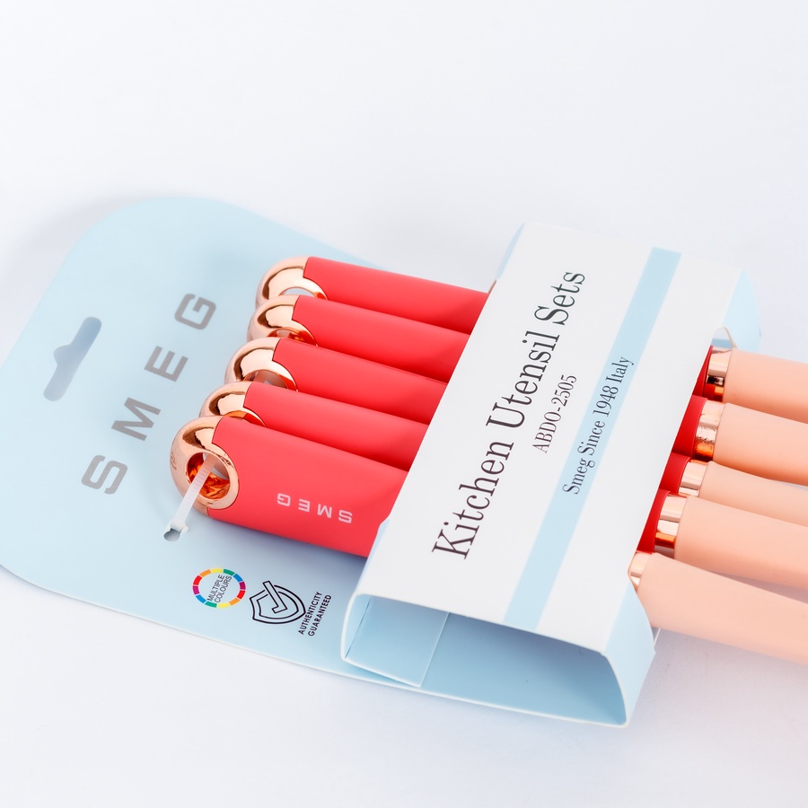 طقم أدوات مطبخ SMEG 6 قطع سيليكون مقاوم للحرارة، تصميم أنيق وألوان عصرية.